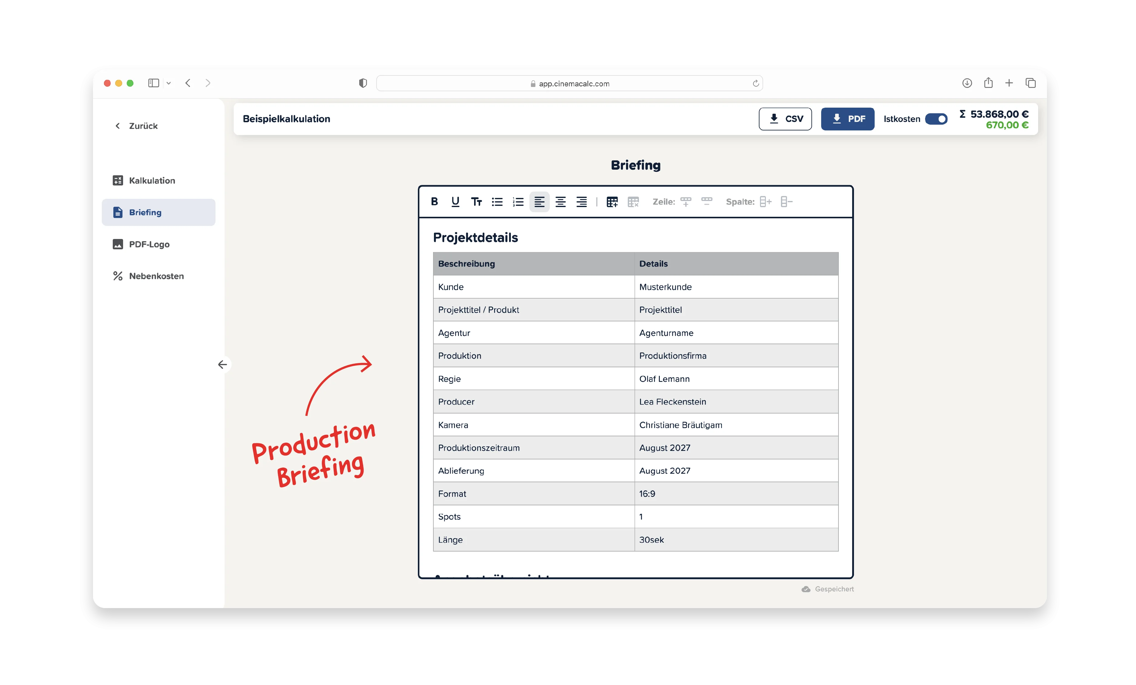 Inklusive vorausgefüllten Templates, übersichtlichen Oberfläche und professionellem PDF-Export. Cinema Calc ist perfekt für: